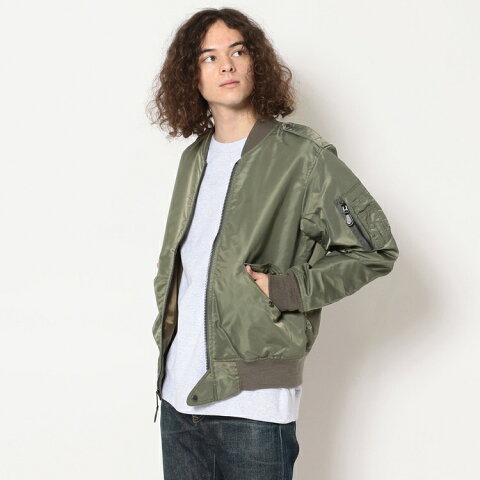 薄い裏地と肩のエポレット、裾のウェスト・タブがMA-1と異なります。
