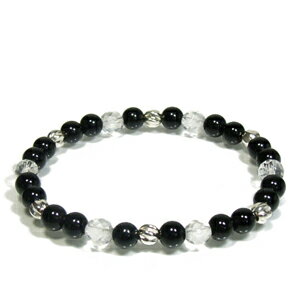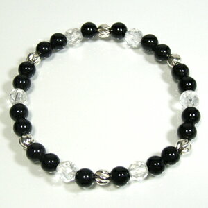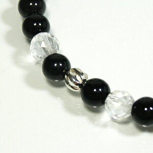 オニキスをベースにシルバービーズ・カット水晶を組み合わせ、きれいめなデザインに仕上げた天然石ブレスレットです。