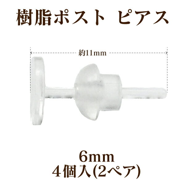 基礎金具 樹脂ポスト ピアス(6mm皿)4個入(2ペア) パーツ 樹脂製 アレルギー対応 ハンドメイド クラフト アクセサリー