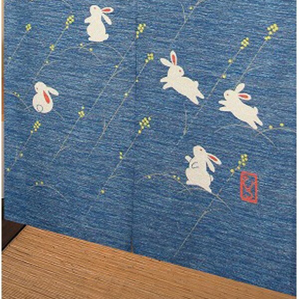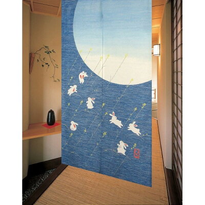 銀糸使用 のれん 七福月うさぎ 和のれん 暖簾 目隠し カーテン 間仕切り おしゃれ 85×150cm 和室 洋室 玄関 廊下 キッチン 浴室 脱衣室 寝室 洗面室 シンプル モダン
