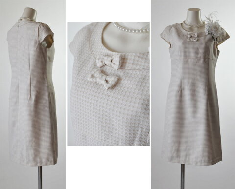 ジャケットとワンピースは千鳥ベージュの中厚生地。